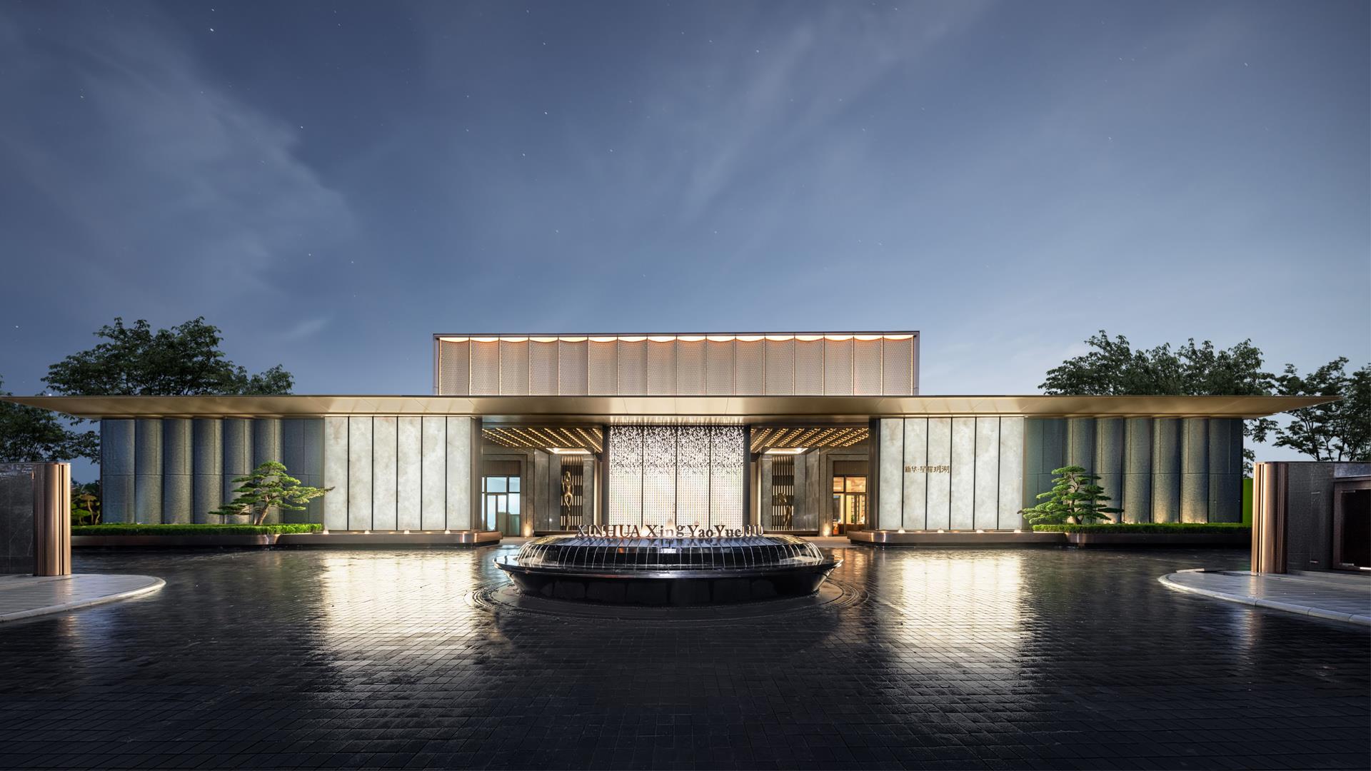 公建化立面/严选优质石材、铝板塑型/双层LOW-E玻璃中置百叶窗(部分)/高品质落地玻璃幕墙