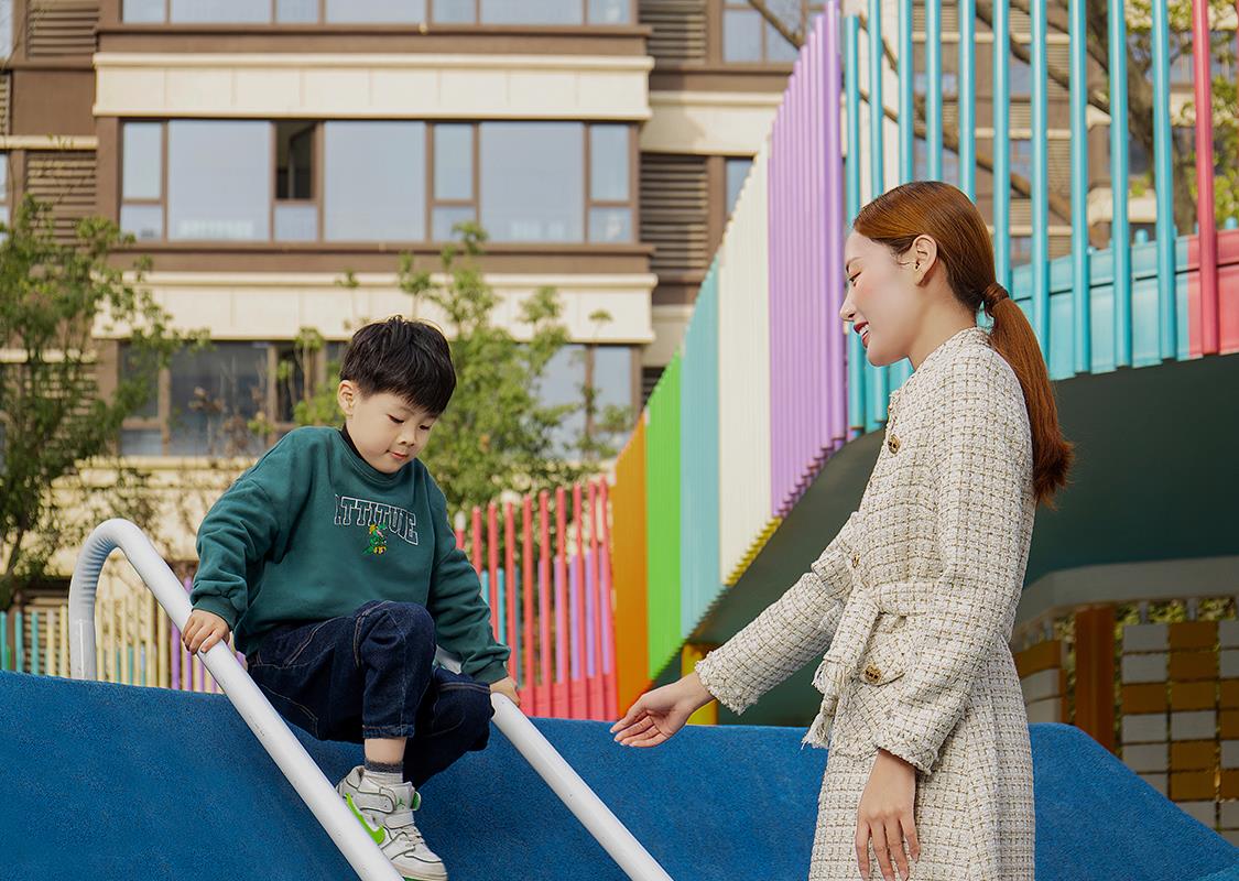 新华地产的社区,以人文、教育为主题,针对全龄社区空间,定制有参与、有体验、有互动的生活空间和场景,全域覆盖“运动+、游戏+、共享+、探索+、美学+、智慧+”六大功能圈,营造具有温度的[生活+]社区。