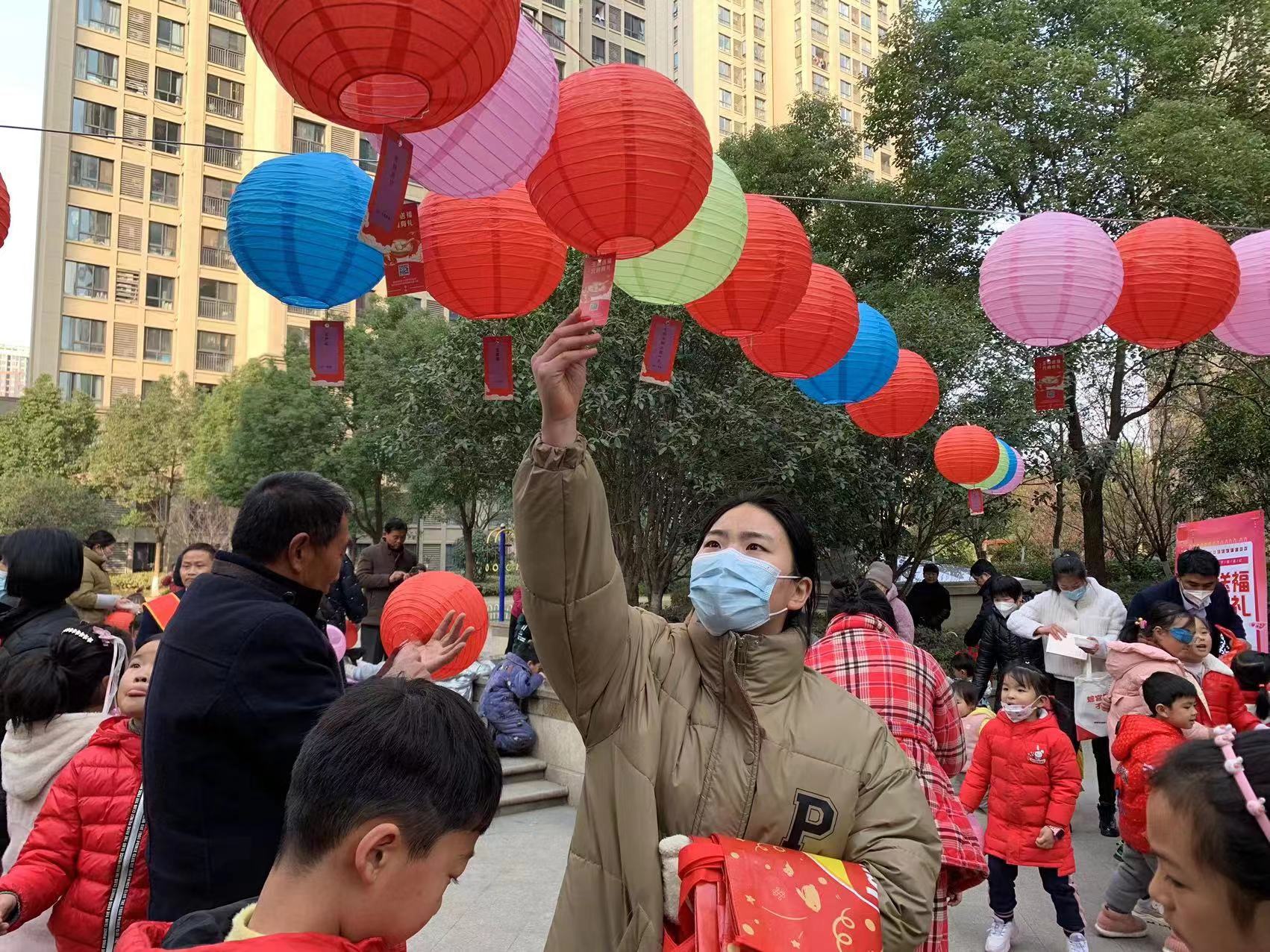 业主们以谜会友、互相切磋,欢声笑语竞猜灯谜,活动现场热闹非凡,传承与难忘在这里完美交织。
